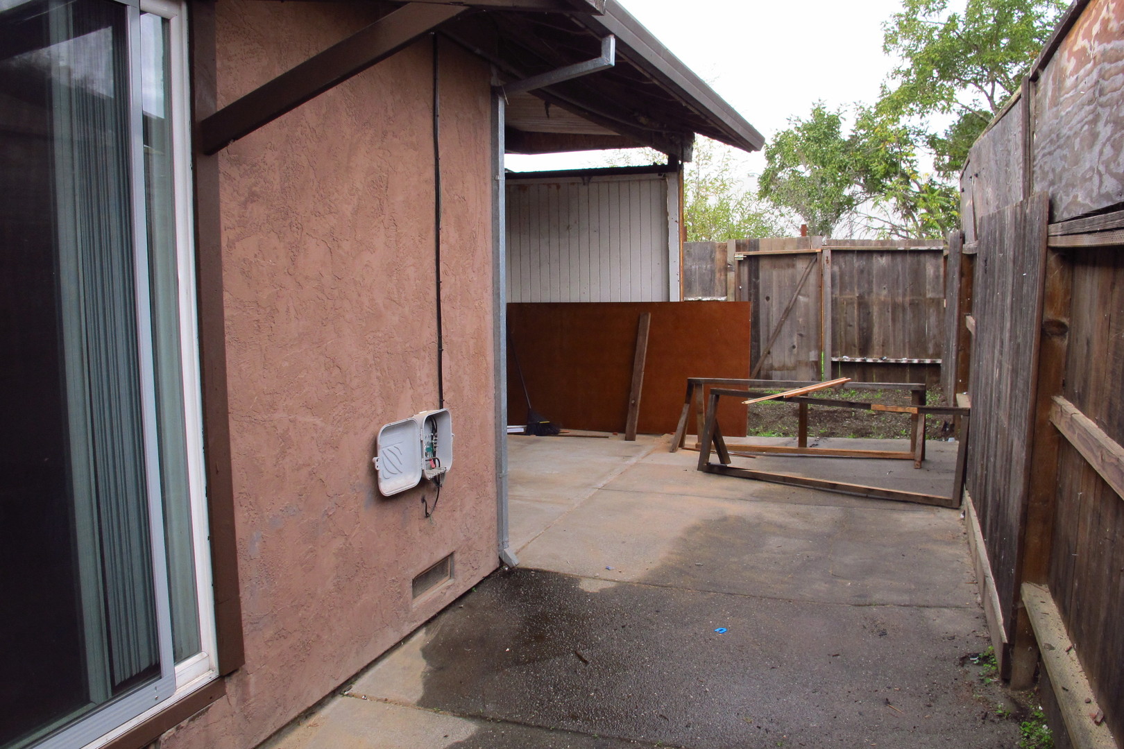 The unit is part of a duplex and has one common wall. The unit features washer and dryer hookups, a secured exterior storage closet, enclosed yard, part of the yard is covered and concrete slab while also providing an open garden area as well. This unit comes with 2 assigned covered parking spaces as well!